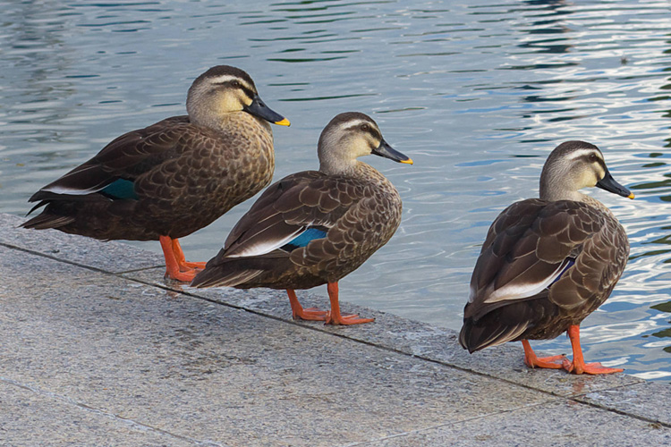 近づくとすぐに池に飛びこんで逃げるので、